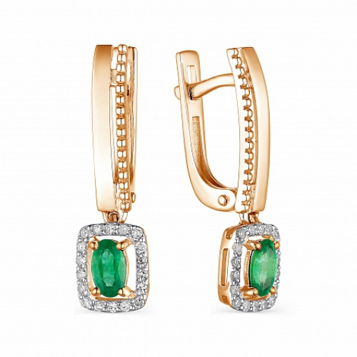 Серьги из красного и белого золота 585 пробы с натуральными изумрудами в окружении россыпи бриллиантов, от бренда Алькор