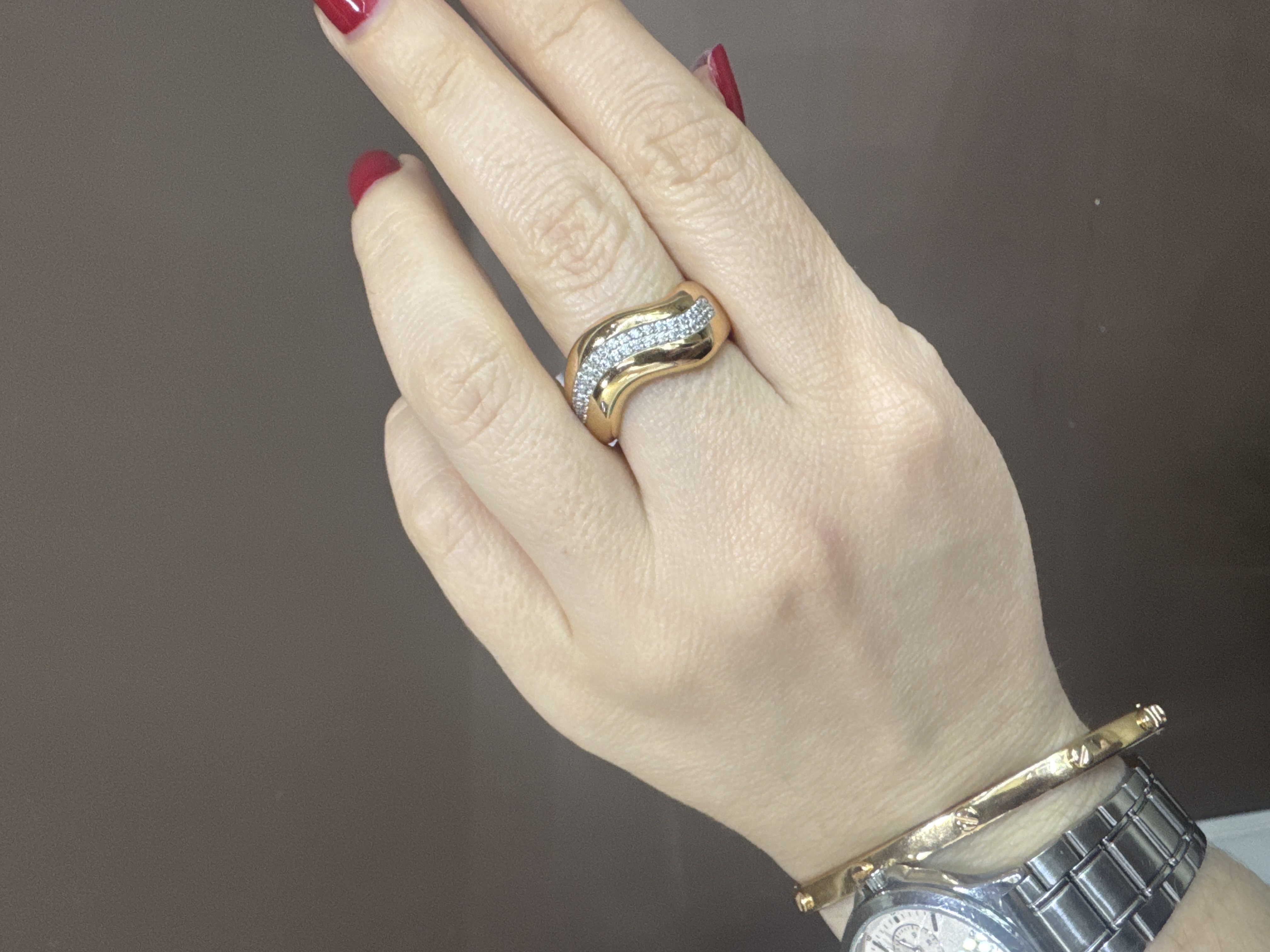 Это великолепное кольцо стало настоящим украшением для меня! Объёмная форма и россыпь сверкающих фианитов делают его по-настоящему роскошным и изысканным. Такое кольцо — прекрасный подарок для себя или близкого человека, который ценит элегантность и качество. Оно не только красиво, но и изготовлено из настоящего золота, что гарантирует его долговечность и сохранение первоначального вида на долгие годы. Я в восторге от этого украшения!