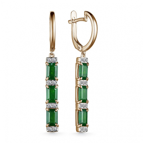 Удлинённые серьги с изумрудами, насыщенный цвет которых подчёркивают искры бриллиантов, выполнены с сочетанием красного и белого золота 585 пробы. Надежные крапановые закрепки пропускают свет со всех сторон, тем самым полностью раскрывая блеск и красоту камней. Тип замка - английский, самый надежный и удобный. Изделие представлено брендом "Алькор". Средняя характеристика камней на артикул: 16 Бриллиант Круг 57 0.175 4/5, 6 Изумруд Октагон 3.407 3/3. К украшению прилагается сертификат от производителя о подлинности драгоценных камней. В комплект поставки входит: