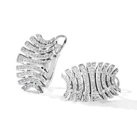 Роскошные объёмные серьги с оригинальным дизайном из плавных линий белого золота 585, украшенных сверкающими бриллиантами