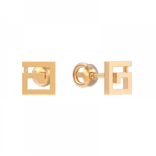 Серьги - пусеты с оригинальным геометрическим дизайном, выполнены из красного золота 585 пробы