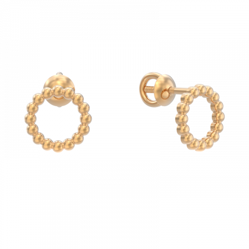 Элегантные серьги - пусеты в форме колечка, выполнены из красного золота 585 пробы