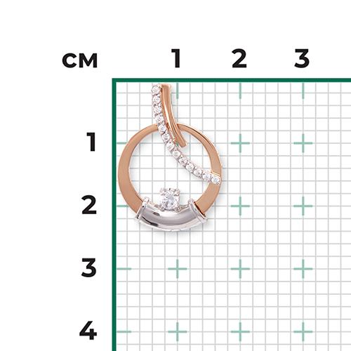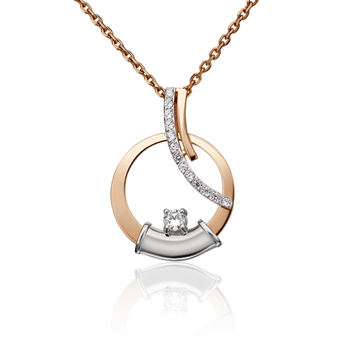 Роскошная подвеска оригинального дизайна из коллекции Trend line, выполнена в сочетании красного и белого золота 585 пробы, украшена великолепными сияющими фианитами
