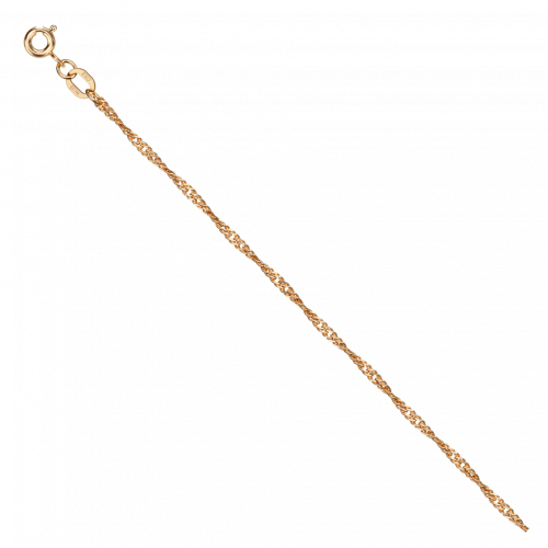 Цепь из красного золота 585 пробы Плетение: сингапур с алмазной гранью Диаметр 0,30мм Одно из самых популярных кручёных плетений — переливающийся на солнце «Сингапур»