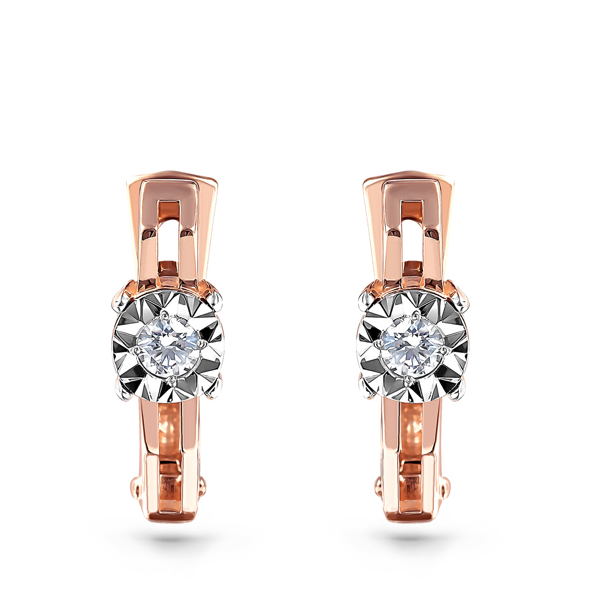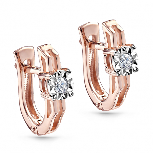 Роскошные серьги, выполнены в сочетании красного и белого золота 585 пробы, украшены бриллиантами