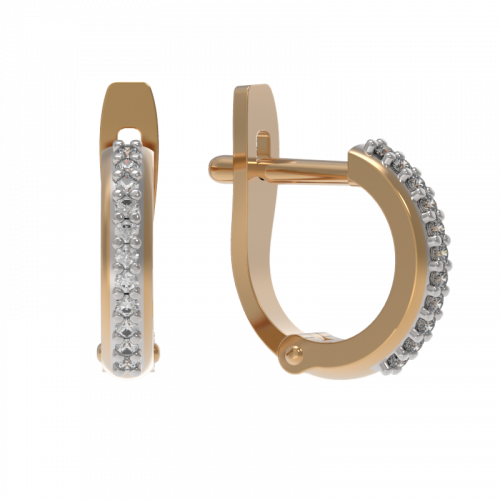 Элегантные серьги, выполнены в сочетании красного и белого золота 585 пробы, украшены сияющими бриллиантами. Закрепка бриллиантов в белом золоте, придает камням объем и подчеркивает их природную красоту и игру света. Тип замка - английский, самый надежный и удобный. Изделие представлено брендом АРИНА. В комплект поставки входит: