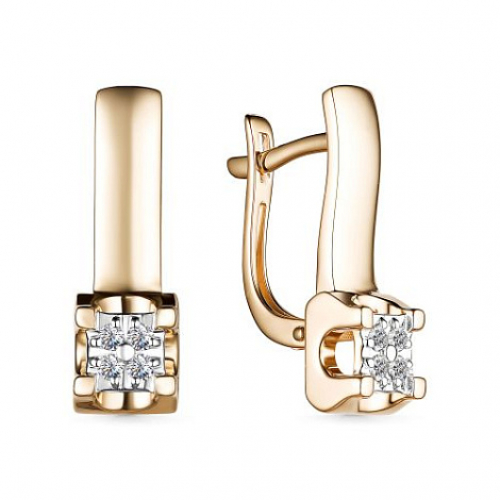 Объемные серьги в авангардном стиле выполнены, в сочетании красного и белого золота 585 пробы, в инкрустации ослепительных бриллиантов. Каст выполнен из белого золота, что визуально увеличивает камень и придает больше блеска и красоты. Тип замка - английский, самый надежный и удобный. Изделие представлено брендом "АЛЬКОР". Средняя характеристика камней на артикул: 8 Бриллиант Круг 57 0.182 4/5. В комплект поставки входит: