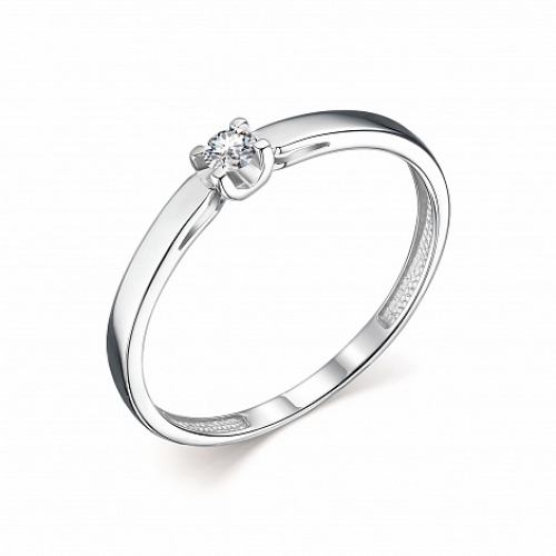 Романтичное кольцо из белого золота с одним бриллиантом от бренда Алькор