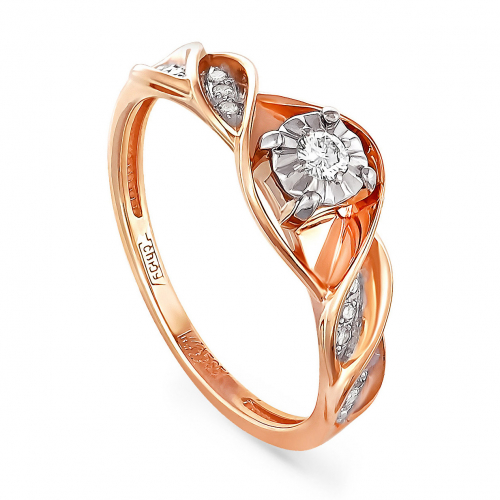 Роскошное кольцо, выполнено в сочетании красного и белого золота 585 пробы, с россыпью бриллиантов