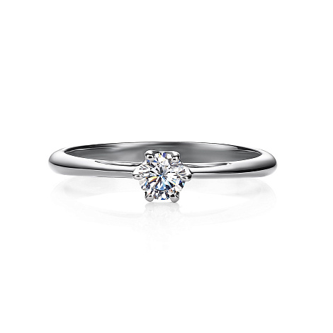 Кольцо классического дизайна с роскошным сверкающим бриллиантом выполнено из белого золота 585 пробы