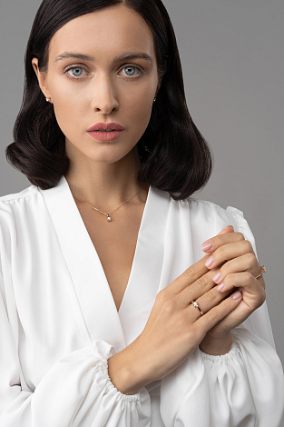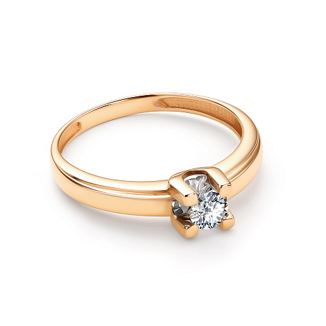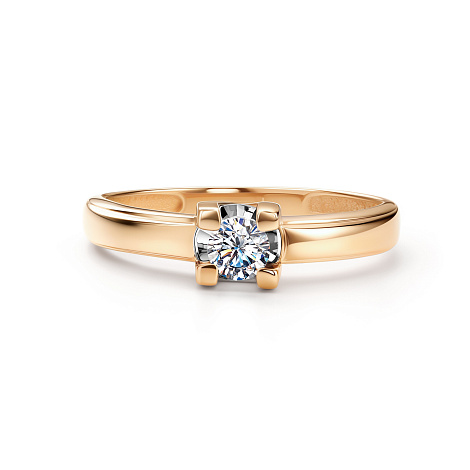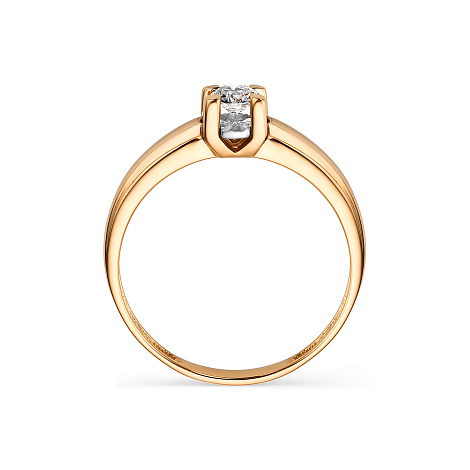 Изящное кольцо с сверкающим бриллиантом выполнено с сочетанием красного и белого золота 585 пробы