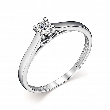 Нежное и романтичное кольцо с роскошным искрящимся бриллиантом в оригинальном касте, выполнено из белого золота 585 пробы