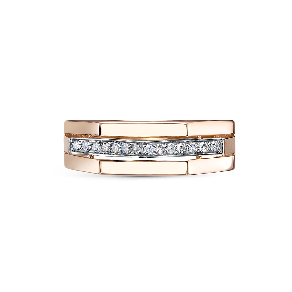 Стильное кольцо, выполнено в сочетании красного и белого золота 585 пробы с родиевым покрытием, украшено россыпью бриллиантов