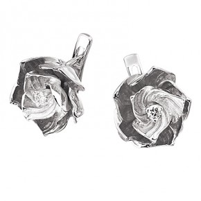 Серьги в виде распустившихся роз выполнены в серебре 925 пробы.