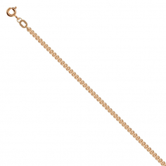 Облегченный браслет из красного золота 585 пробы. Плетение: нонна с алмазной гранью. Диаметр 0,40 мм Одно из самых популярных базовых плетений — за счет яркой алмазной грани цепь переливается и блестит и находится на первых местах по качеству, тк отличается особой прочностью. Производитель Красцветмет представляет высокое качество продукции, цепи соответствуют международным стандартом и каждое украшение проходит дополнительный контроль качества при выходе с завода.