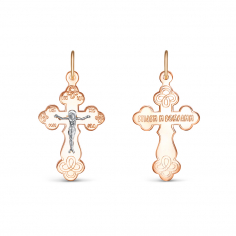 Подвеска в виде классического нательного креста выполнена из комбинированного золота 585 пробы.