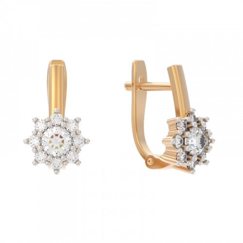Нежные серьги выполнены из красного и белого золота 585 пробы, украшены великолепными сияющими фианитами, собранными в соцветие