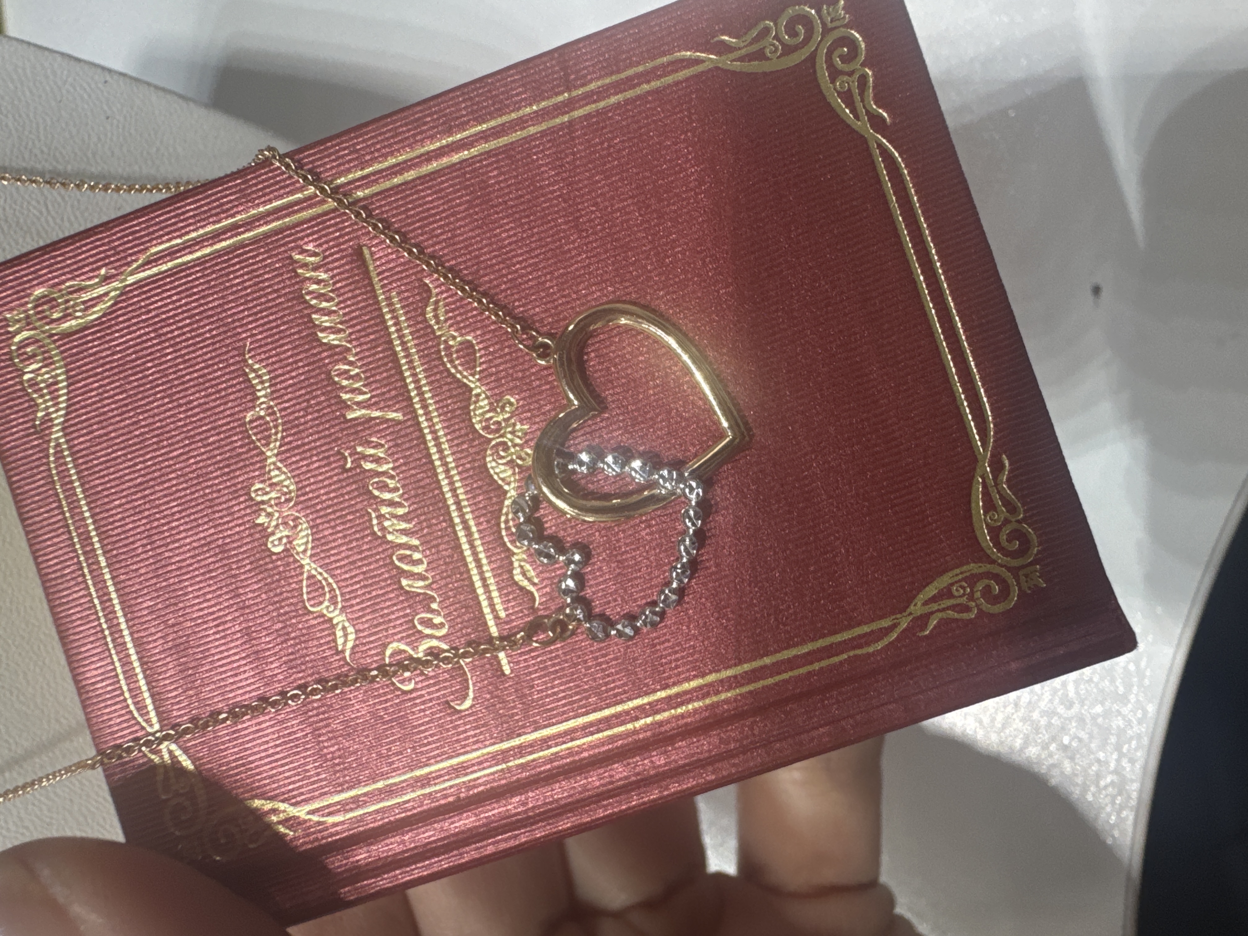 Купила колье от Carlin — это настоящее произведение искусства! Дизайн в виде переплетённых сердец смотрится очень романтично и элегантно. Сочетание красного и белого золота придаёт украшению изысканность и благородство. Качество изготовления на высоте, все детали выполнены безупречно. Ношу колье с удовольствием, получаю комплименты. Очень довольна покупкой! Рекомендую всем, кто ценит качественные и красивые аксессуары.