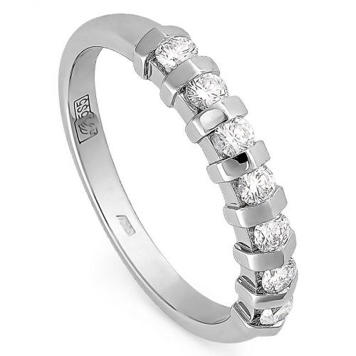Кольцо, украшенное дорожкой великолепных сверкающих бриллиантов, выполнено из белого золота 585 пробы
