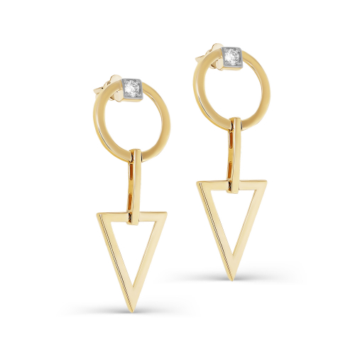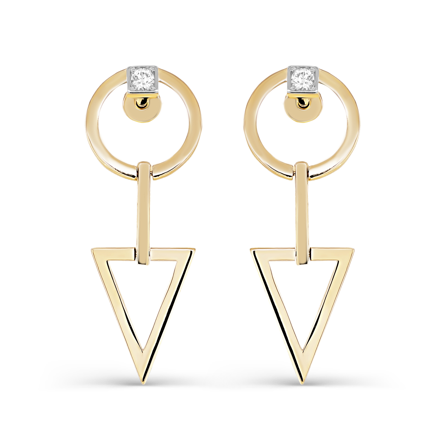 Изящные серьги в геометрическом стиле, украшенные сверкающими бриллиантами, выполнены из жёлтого и белого золота 585 пробы