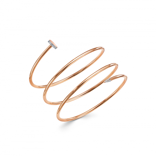Стильный жёсткий браслет в виде спирали, украшенный фианитами, выполнен из красного золота 585 пробы