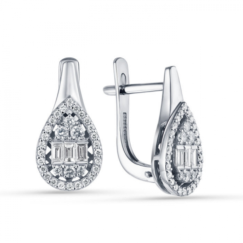 Серьги с бриллиантами оригинальной прямоугольной формы огранки в окружении меньших по размеру бриллиантов, выполнены из белого золота 585 пробы. Роскошные драгоценные камни на белом золоте смотрятся особенно эффектно, привлекая взгляд своим блеском и красотой. Тип замка - английский, самый надежный и удобный. Изделие представлено ювелирной компанией ERA. Средняя характеристика камней на артикул: 6 Бр Бп-25 (30-25) 0,253Ct 3/5А ,4 Бр Кр 57 (200-120) 0,031Ct 4/6А ,4 Бр Кр 57 (60-40) 0,085Ct 4/6А ,52 Бр Кр 57 (400-200) 0,168Ct 4/6А ,4 Бр Кр 57 (90-60) 0,057Ct 4/6А. На каждое украшение имеется сертификат о подлинности камней от производителя. В комплект поставки входит: