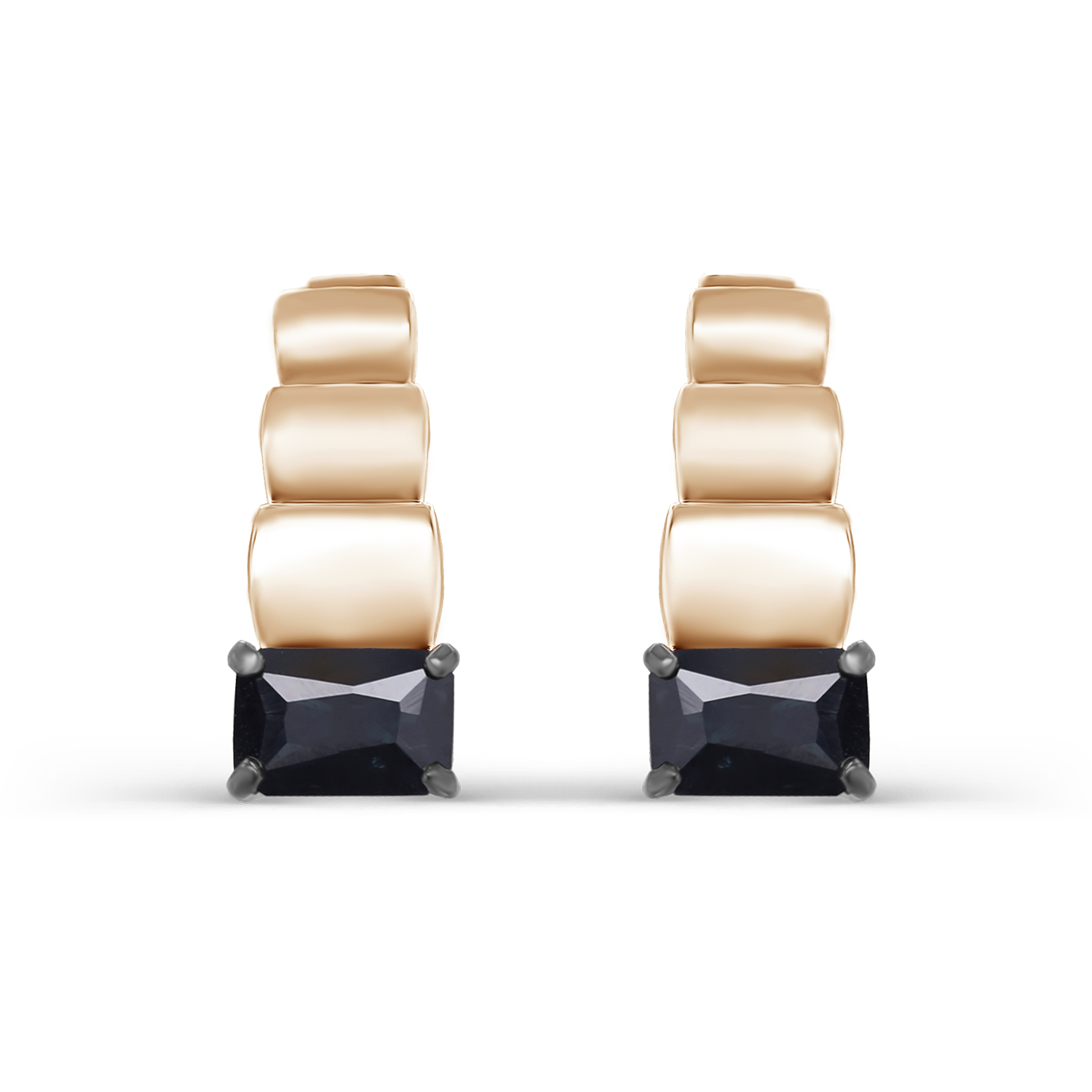 Серьги из красного золота 585 пробы с натуральныим сапфирами оригинальной формы огранки Октагон
