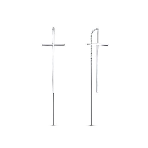 Стильные серьги-протяжки с подвесками в виде креста, выполнены из серебра 925 пробы