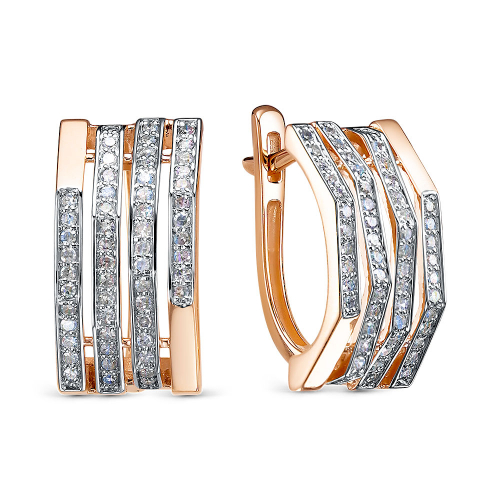 Объёмные серьги, украшенные дорожками сверкающих бриллиантов, выполнены с сочетанием красного и белого золота 585 пробы. Такие серьги будут отличным подарком для любой женщины, ценящей красоту и изысканность ювелирных изделий. Они подчеркнут индивидуальность своей обладательницы и станут настоящим украшением её коллекции украшений. Тип замка - английский, самый надежный и удобный.