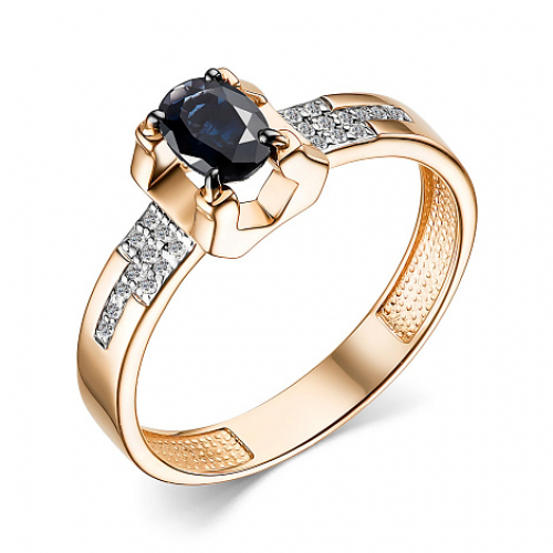 Элегантное кольцо с роскошным сверкающим сапфиром и бриллиантами, выполнено с сочетанием красного и белого золота 585 пробы