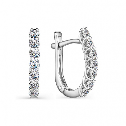 Элегантные серьги, украшенные дорожками сверкающих бриллиантов, выполнены из белого золота 585 пробы. Тип замка - английский, самый надежный и удобный. Именно такие украшения универсально подходят к какому угодно образу и способны изящно завершить любой наряд.