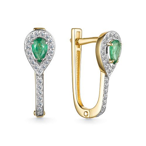Нежные серьги выполненные с сочетанием белого и жёлтого золота 585 пробы, украшены изумрудами и бриллиантами. Изумруд создаёт яркий контраст с лимонным золотом, а бриллианты добавляют блеска и роскоши. Это украшение станет прекрасным дополнением к вашему образу и подчеркнет вашу индивидуальность. Тип замка - английский, самый надежный и удобный.
