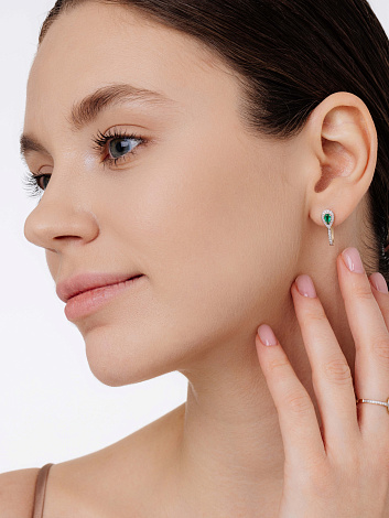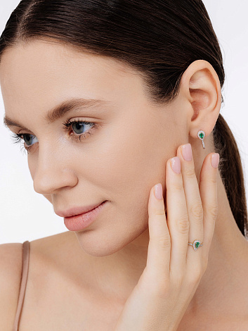 Средняя характеристика камней на артикул: 2 Изумруд Груша 0.354 3/3, 48 Бриллиант Круг 57 0.161 4/5. На каждое украшение имеется сертификат о подлинности камней от производителя. В комплект поставки входит: