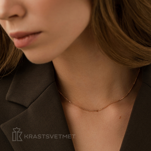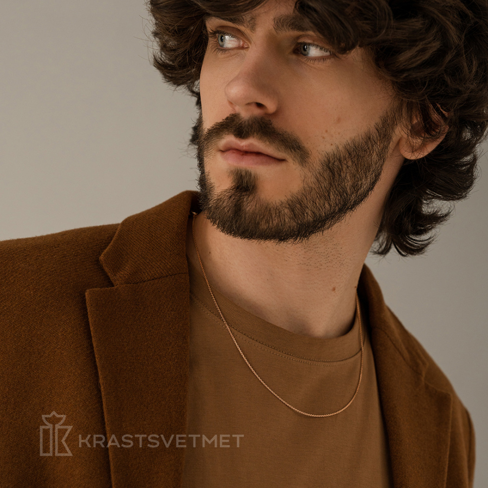 Полновесная цепь из богатого красного золота 585 пробы, выполненная традиционным якорным плетением с захватывающей игрой света, обеспечиваемой бриллиантовым блеском алмазной грани