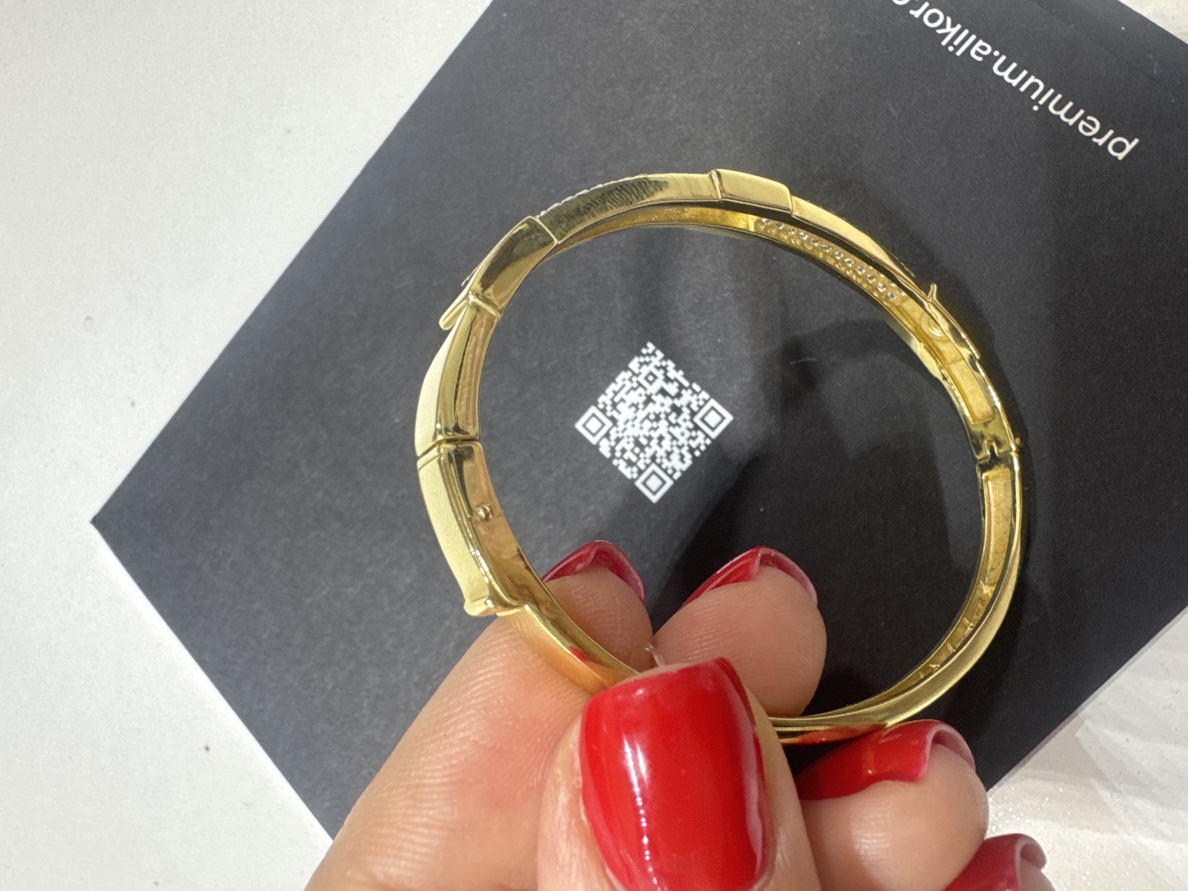 стильное украшение, выполненн из качественного лимонного золота. Браслет имеет прочную конструкцию, что обеспечивает его долговечность и удобство в носке. Подарил жене на годовщину , осталась довольна .