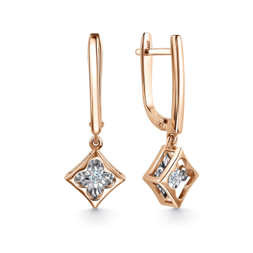 Элегантные серьги, выполнены в сочетании красного и белого золота 585 пробы с родиевым покрытием, украшены бриллиантами