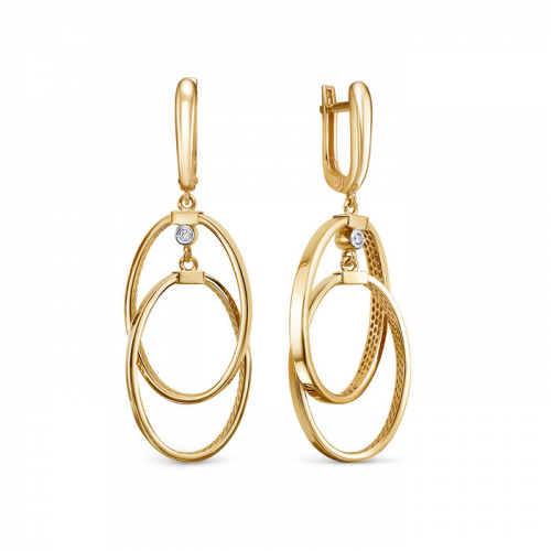 Удлинённые серьги с изящными подвесками в форме овала, выполнены из жёлтого и белого золота 585 пробы, украшены фианитом. Оригинальный дизайн подчёркивает блеск и красоту драгоценного металла. Такое украшение станет модной изюминкой в повседневном или деловом образе.