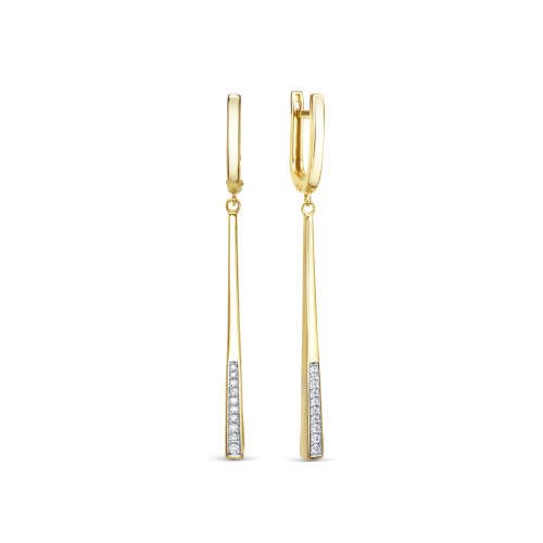 Удлинённые серьги с изящным лаконичным дизайном, выполнены из жёлтого и белого золота 585 пробы, украшены фианитами