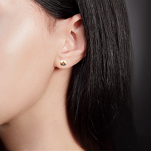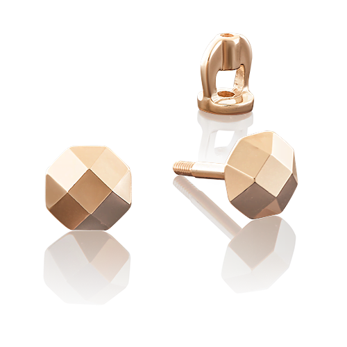 Серьги-пусеты круглой формы с геометричным дизайном, выполнены из красного золота 585 пробы