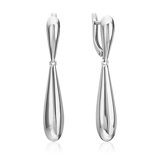 Элегантные удлинённые серьги выполнены из родированного серебра 925 пробы