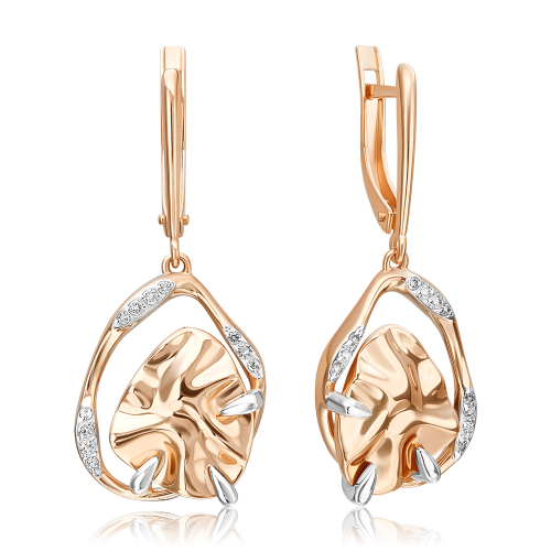 Изящные серьги с удлинённым силуэтом из красного и белого золота 585 пробы из коллекции ШАРМ от ювелирного бренда PLATINA