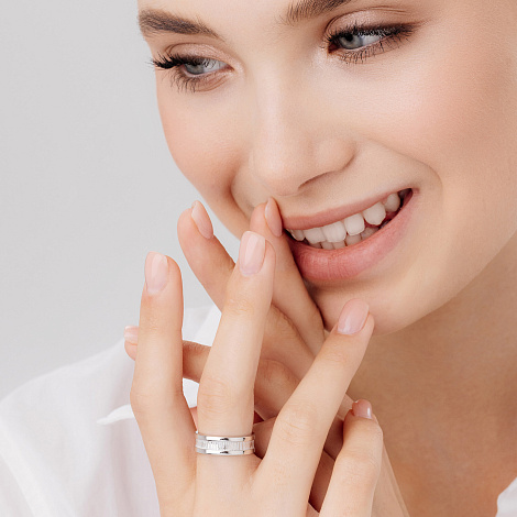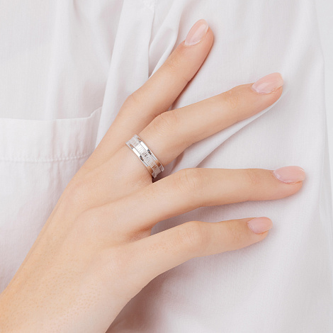 Стильное кольцо с рельефным дизайном выполнено из серебра 925 пробы. Покрытие родием обеспечивает украшению дополнительный блеск и длительную сохранность внешнего вида. Кольцо подойдёт в качестве коктейльного, в неформальный гардероб, для повседневного ношения. Изделие представлено брендом АЛЬКОР. В комплект поставки входит: