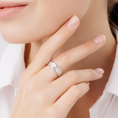 Стильное кольцо с рельефным дизайном выполнено из серебра 925 пробы