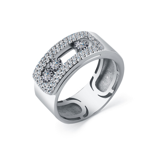 Роскошное объёмное кольцо, украшенное сверкающими бесцветными бриллиантами, выполнено из белого золота 585 пробы