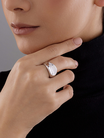 Объёмное кольцо лаконичным дизайном выполнено из родированного серебра 925 пробы