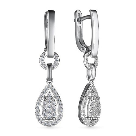 Нежные удлинённые серьги, украшенные сверкающей россыпью бриллиантов, выполнены в белом золоте 585 пробы