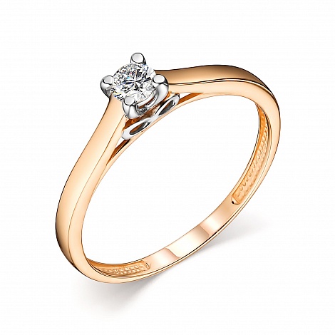 Нежное и романтичное кольцо с роскошным искрящимся бриллиантом в оригинальном касте, выполнено из красного и белого золота 585 пробы