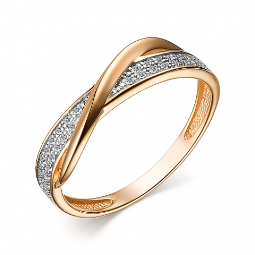 Элегантное кольцо, украшенное сверкающими дорожками бриллиантов, блеск которых подчёркивает изящная линия красного золота, выполнено с сочетанием красного и белого золота 585 пробы