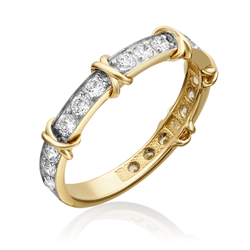 Стильное кольцо оригинального дизайна выполнено из жёлтого золота 585 пробы, украшено россыпью сияющих фианитов. Современный дизайн и сияние камней привлекают внимание с первого взгляда. Изделие представлено брендом PLATINA jewelry. Характеристики вставки: 18 Фианит Круг 2,00 В комплект поставки входит: