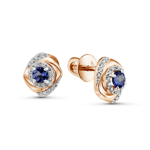 Роскошные серьги - пусеты из коллекции Fresco, выполнены из красного золота 585 пробы, украшены темно-синими сапфирами в окружении сияющих бриллиантов